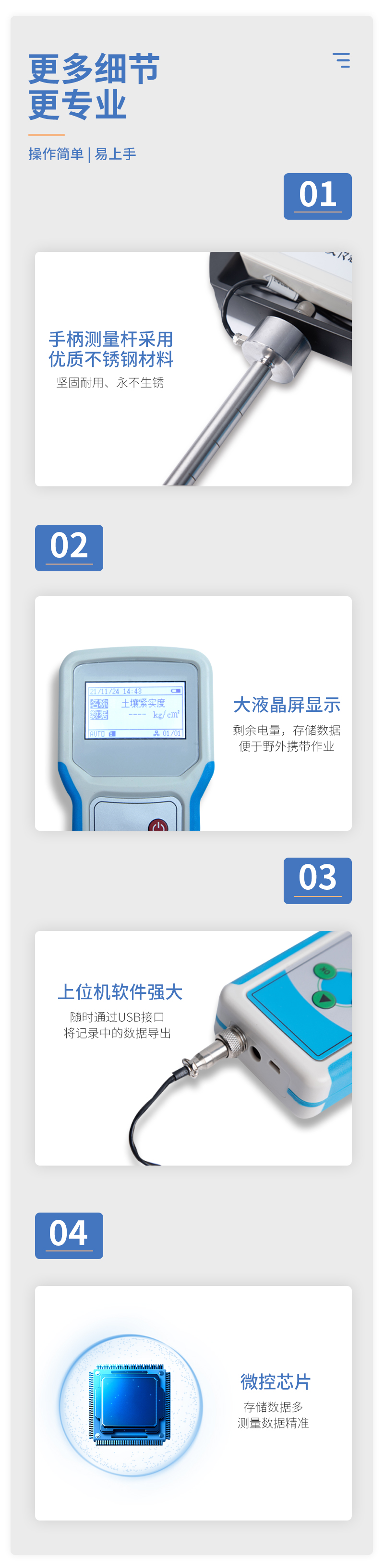 土壤緊實(shí)度又叫土壤硬度或土壤堅實(shí)度或土壤穿透阻力。一般用金屬柱塞或探針壓入土壤時的阻力表示(單位為Pa)。土壤緊實(shí)度是指土壤抵抗外力的壓實(shí)和破碎的能力,是土壤性質(zhì)的其中一個方面。另外,土壤物理性包括土壤質(zhì)地、結(jié)構(gòu)、孔隙性等,涉及到土壤的堅實(shí)度、塑性、通透性、排水、蓄水能力、根系穿透的難易等。