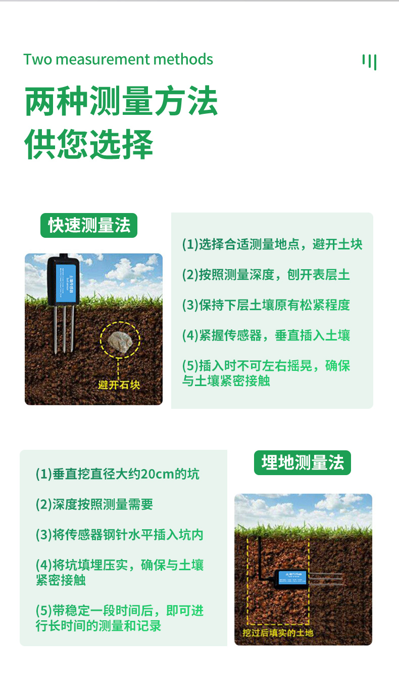 MEC10土壤水分/電導(dǎo)率/溫度傳感器性能穩(wěn)定靈敏度高,是觀測和研究鹽漬土的發(fā)生、演變、改良以及水鹽動態(tài)的重要工具。通過測量土壤的介電常數(shù),能直接穩(wěn)定地反映各種土壤的真實(shí)水分含量。MEC10土壤水分傳感器可測量土壤水分的體積百分比,是符合目前**標(biāo)準(zhǔn)的土壤水分測量方法。適用于土壤墑情監(jiān)測、科學(xué)試驗(yàn)、節(jié)水灌溉、溫室大棚、花卉蔬菜、草地牧場、土壤速測、植物培養(yǎng)、污水處理、精細(xì)農(nóng)業(yè)等場合。