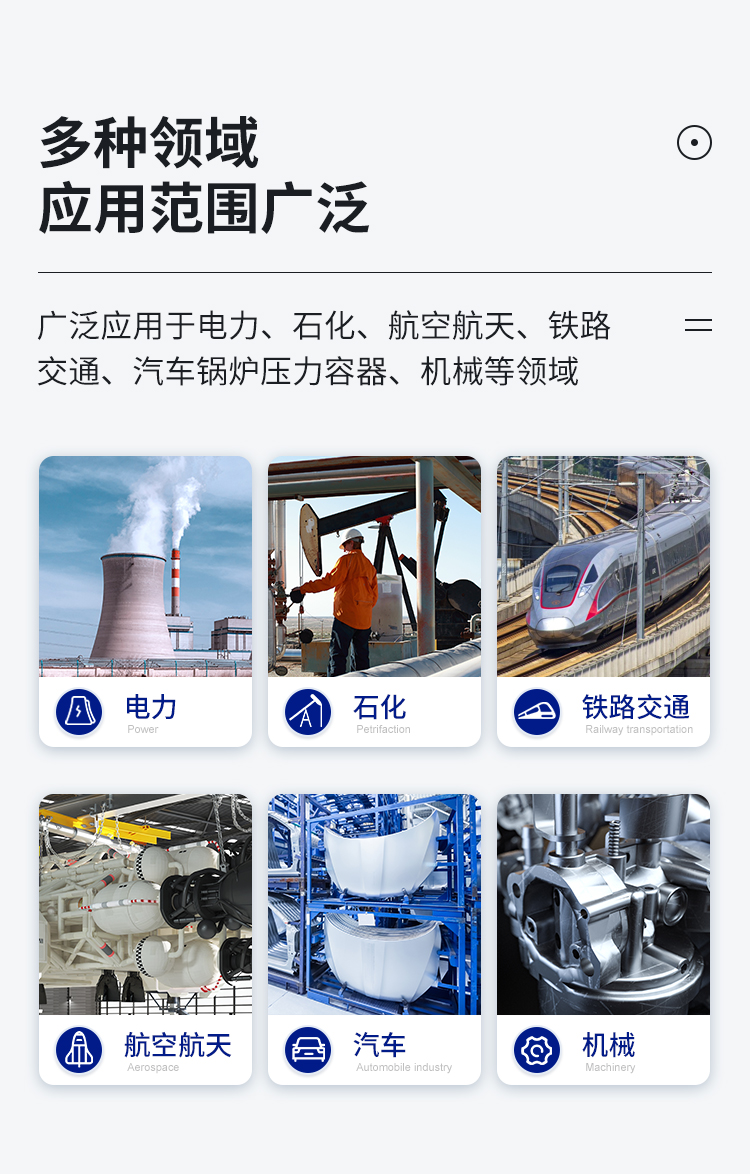 數(shù)字超聲波探傷儀能夠便捷、準(zhǔn)確地進(jìn)行工件內(nèi)部多種缺陷如裂紋、焊縫、氣孔、砂眼、夾雜、折疊等的檢測、定位、評估及診斷,廣泛應(yīng)用于電力、石化、鍋爐壓力容器、鋼結(jié)構(gòu)、航空航天、鐵路交通、汽車、機械等領(lǐng)域。它是無損檢測行業(yè)的儀器。