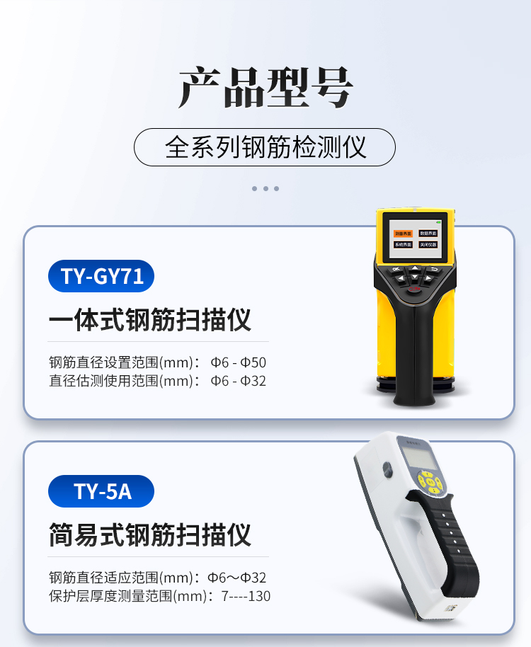 鋼筋位置和銹蝕測(cè)定儀TY-GX50B,集鋼筋儀和銹蝕儀的功能于一體,是集檢測(cè)鋼筋混凝土內(nèi)部鋼筋直徑、位置、分布、鋼筋的混凝土保護(hù)層厚度及鋼筋的銹蝕程度等功能于一體的新一代綜合類鋼筋檢測(cè)設(shè)備。