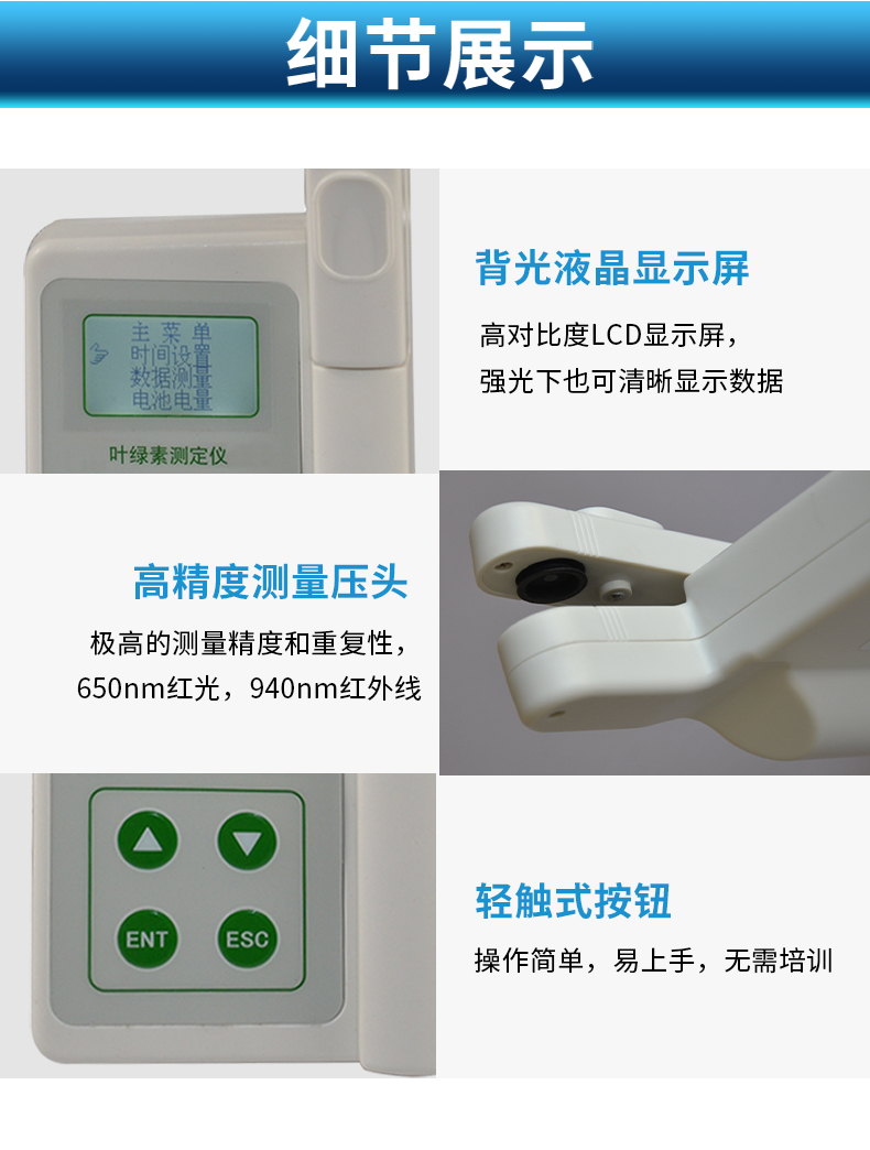 儀器用途:葉綠素測定儀可 以即時(shí)測量植物的葉綠素相對含量(單位SPAD)或綠色程度、葉面溫度,從而解植物真實(shí)的硝基需求量并且了解土壤硝基的缺乏程度或是否過多地施加了氮肥。 可以通過此款儀器來增加氮肥的利用率,并可保護(hù)環(huán)境??蓮V泛應(yīng)用于農(nóng)林相關(guān)科研單位和高校對植物生理指標(biāo)的研究和農(nóng)業(yè)生產(chǎn)的指導(dǎo)。工作原理:根據(jù)