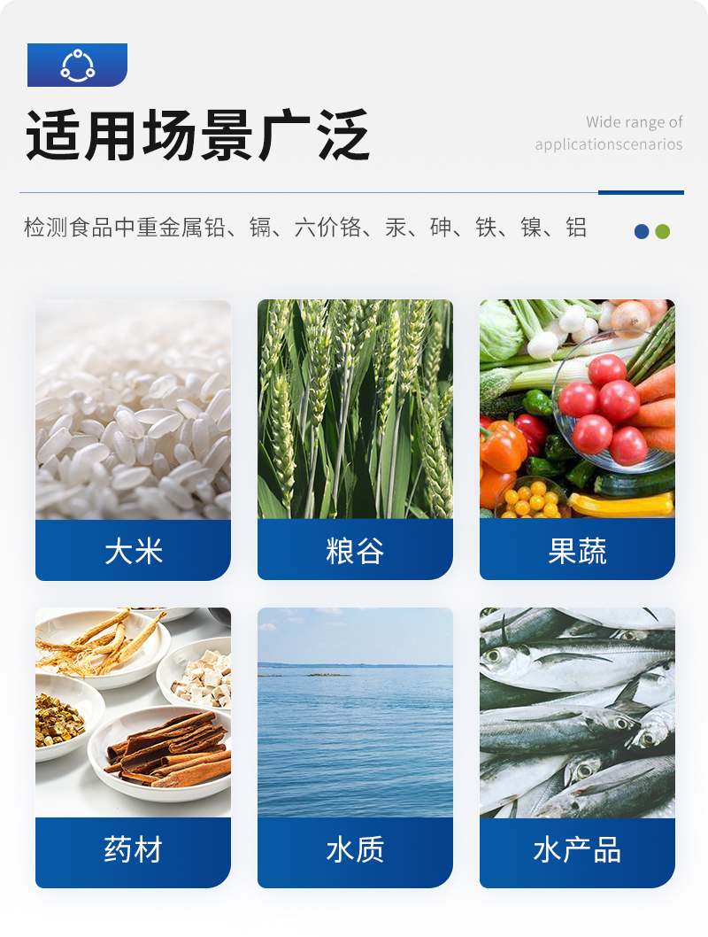 儀器用途: 山東天研儀器有限公司生產(chǎn)的重金屬檢測(cè)儀為集成化食品安全快速檢測(cè)分析設(shè)備,采用臺(tái)式一體化設(shè)計(jì),重金屬檢測(cè)儀可廣泛應(yīng)用于大米、糧谷、果品、蔬菜、藥材、水產(chǎn)品中重金屬鉛、鎘、六價(jià)鉻、汞、砷、鐵、鎳、鋁等項(xiàng)目進(jìn)行快速定量檢測(cè),檢測(cè)項(xiàng)目可根據(jù)客戶的需求定制,儀器預(yù)留其他項(xiàng)目檢測(cè)程序和