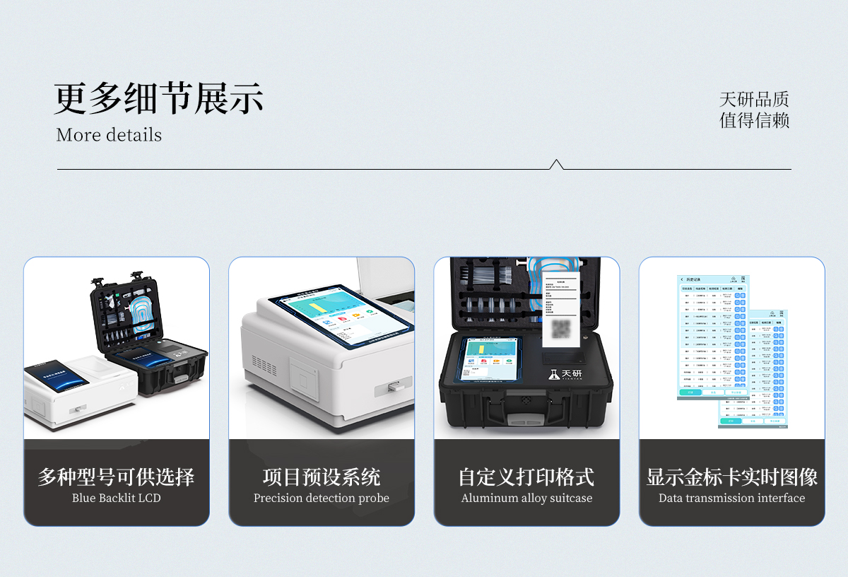 山東天研儀器有限公司生產(chǎn)的箱式抗生素檢測儀為集成化食品安全快速檢測分析設(shè)備,采用臺式一體化設(shè)計(jì),可快速檢測200多種食品安全項(xiàng)目,包含非食用化學(xué)物質(zhì)、濫用食品添加劑、農(nóng)藥殘留、獸藥殘留、重金屬、病害肉、營養(yǎng)強(qiáng)化劑、抗生素類殘留、激素類殘留、真菌毒素類殘留、化學(xué)類殘留等項(xiàng)目的定性定量檢測。該高智能食品安全檢測儀為集成化食品安全快速檢測分析設(shè)備,目前已于食藥監(jiān)局、衛(wèi)生部門、高教院校、科研院所、農(nóng)業(yè)部門、養(yǎng)殖場、屠宰場、食品肉產(chǎn)品深加工企業(yè)及檢驗(yàn)檢疫部門等單位廣泛使用。