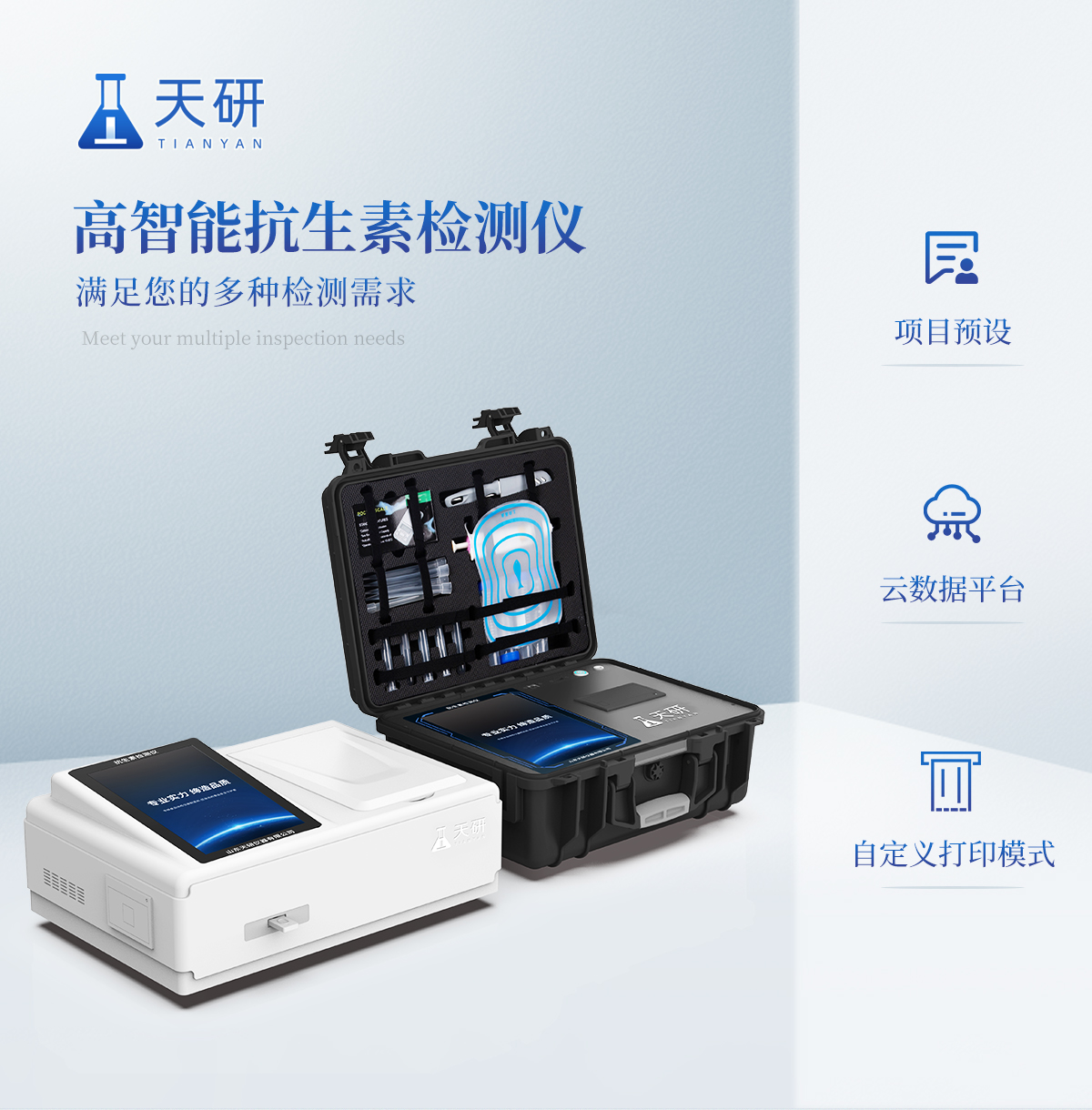 產(chǎn)品介紹: 山東天研儀器有限公司生產(chǎn)的箱式抗生素檢測儀為集成化食品安全快速檢測分析設(shè)備,采用臺式一體化設(shè)計(jì),可快速檢測200多種食品安全項(xiàng)目,包含非食用化學(xué)物質(zhì)、濫用食品添加劑、農(nóng)藥殘留、獸藥殘留、重金屬、病害肉、營養(yǎng)強(qiáng)化劑、抗生素類殘留、激素類殘留、真菌毒素類殘留、化學(xué)類殘留等項(xiàng)目的定性