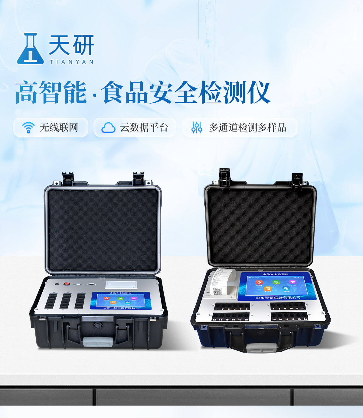 產(chǎn)品介紹: 多功能食品安全檢測儀可快速檢測200多項(xiàng)目,包含非食用化學(xué)物質(zhì)、濫用食品添加劑、農(nóng)藥殘留、獸藥殘留、重金屬、病害肉、營養(yǎng)強(qiáng)化劑、抗生素類殘留、激素類殘留、真菌毒素類殘留、化學(xué)類殘留等現(xiàn)場的定性定量檢測。該多功能食品安全檢測儀為集成化食品安全快速檢測分析設(shè)備,廣泛應(yīng)用于市場監(jiān)