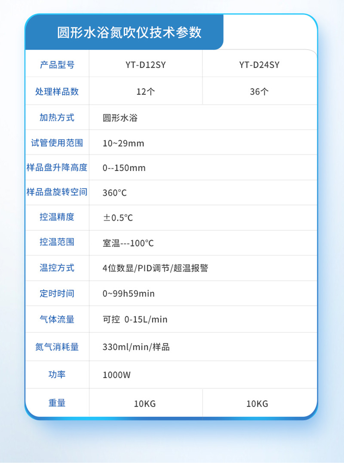 | YT-D12(12孔) | 12個(gè) | Ф16mm | 150W | 0-15L/min | 試管架一個(gè) | ±0.5℃ | 室溫+5℃~150℃ | 數(shù)顯控溫 | 280mm*240mm*500mm | 7KG |