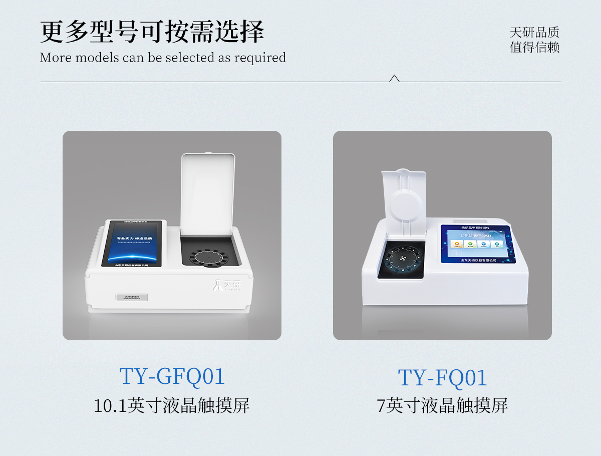 | 1、智能**且方便 | ①智能芯片:主控芯片采用ARM Cortex-A7,RK3288/4核處理器,搭配安卓智能操作系統(tǒng),集實(shí)驗(yàn)操作,分析結(jié)果,打印報(bào)告等功能于一體,使用方便,性能更強(qiáng)。 | ②大屏顯示:采用10.1英寸液晶觸摸屏,單機(jī)即可操作,無需連接外部顯示或控制器。 | ③多樣同檢:儀器具有12個(gè)檢測通道,可同時(shí)一次性檢測11個(gè)樣品,效率更高。 | ④工作預(yù)設(shè):具有任務(wù)預(yù)設(shè)模塊,一鍵提前預(yù)設(shè)樣品所有信息內(nèi)容。來樣時(shí)可直接檢測,同時(shí)可多次調(diào)取。 | ⑤數(shù)據(jù)分析:設(shè)備首頁自動(dòng)匯總分析數(shù)據(jù),并繪制柱形分析圖,各項(xiàng)檢測數(shù)據(jù)一目了然,快捷直觀。 | ⑥高度集成:模塊高度集合,將分光光度模塊、數(shù)字化管理模塊、無線通訊模塊集成于一體。可將檢測結(jié)果進(jìn)行分析,直接上傳至數(shù)據(jù)平臺,實(shí)現(xiàn)數(shù)據(jù)共享,方便后期進(jìn)行數(shù)據(jù)分析與統(tǒng)計(jì)。 | ⑦遠(yuǎn)程升級:儀器具備遠(yuǎn)程升級功能,可遠(yuǎn)程升級程序,無需返廠,并可持續(xù)性免費(fèi)更新系統(tǒng)版本,降低成本及運(yùn)輸損耗風(fēng)險(xiǎn)。 | 2、檢測精準(zhǔn)且直觀 | ①**技術(shù):精密旋轉(zhuǎn)比色池,使用同芯片同光源校準(zhǔn)精度,解決不同光源之間存在波長誤差的問題,更加準(zhǔn)確**。 | ②結(jié)果直觀:儀器自動(dòng)對檢測結(jié)果與國標(biāo)限量值進(jìn)行對比,自動(dòng)判定結(jié)果是否合格,結(jié)果更直觀。 | 3、功能強(qiáng)大且實(shí)用 | ①存儲(chǔ)功能:設(shè)備可以存儲(chǔ)數(shù)據(jù)100000組,可在屏幕上直觀查看歷史數(shù)據(jù),可導(dǎo)出數(shù)據(jù)。 | ②打印功能:設(shè)備自帶打印功能,可對樣品信息及檢測結(jié)果無限次隨意打印。 | ③全新方式:新創(chuàng)自定義打印方式,可按需靈活勾選控制:二維碼,抽樣信息、檢測信息,受檢信息、復(fù)核信息、抽樣日期、檢測日期等信息的打印 | ④多重編輯:樣品信息可多重編輯,可以對每個(gè)通道屬性和樣品信息單獨(dú)進(jìn)行編輯,例如樣品信息、抽樣信息、檢測信息,受檢信息、復(fù)核信息、抽樣日期、檢測日期等信息等。 | ⑤雙語設(shè)計(jì):全中文/英文操作菜單,簡單實(shí)用,適用于不同用戶的需求。 |