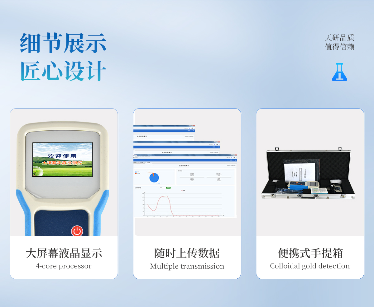 | 該款儀器是本公司由本公司專門研制,用于快速測(cè)量土壤環(huán)境中的各個(gè)參數(shù)值,該款傳感器采用原裝進(jìn)口的微控芯片,具有運(yùn)算速度快,存儲(chǔ)數(shù)據(jù)多,測(cè)量數(shù)據(jù)精準(zhǔn)等優(yōu)點(diǎn),使用大容量鋰電池供電,經(jīng)濟(jì)環(huán)保。 | .采用一體化結(jié)構(gòu)設(shè)計(jì),集液晶顯示儀表+傳感器+便攜手提箱合成在一個(gè)便攜式手提箱內(nèi),本機(jī)操作簡(jiǎn)單,性能可靠,野外攜帶極為方便。 | .采用大液晶屏顯示測(cè)量數(shù)據(jù)、實(shí)時(shí)時(shí)間、當(dāng)?shù)亟?jīng)緯度,剩余電量等信息,存儲(chǔ)數(shù)據(jù)等,便于野外攜帶作業(yè)。 | .高精度傳感器,封裝、手柄、測(cè)量桿采用優(yōu)質(zhì)不銹鋼材料。堅(jiān)固耐用、永不生銹。 | .能存儲(chǔ)指定各個(gè)點(diǎn)的土壤測(cè)量值,上位機(jī)軟件功能強(qiáng)大,隨時(shí)可以通過(guò)USB接口將記錄中的數(shù)據(jù)導(dǎo)出到計(jì)算機(jī)上,并可以存儲(chǔ)為EXCE表格文件,生成數(shù)據(jù)曲線,以供其它分析軟件進(jìn)一步進(jìn)行數(shù)據(jù)處理。 | 土壤緊實(shí)度計(jì) 適用范圍: | 廣泛應(yīng)用于農(nóng)業(yè)、氣象、林業(yè)、水利、環(huán)保、地質(zhì)災(zāi)害預(yù)防等領(lǐng)域的科研、生產(chǎn)、教學(xué)中。 |
