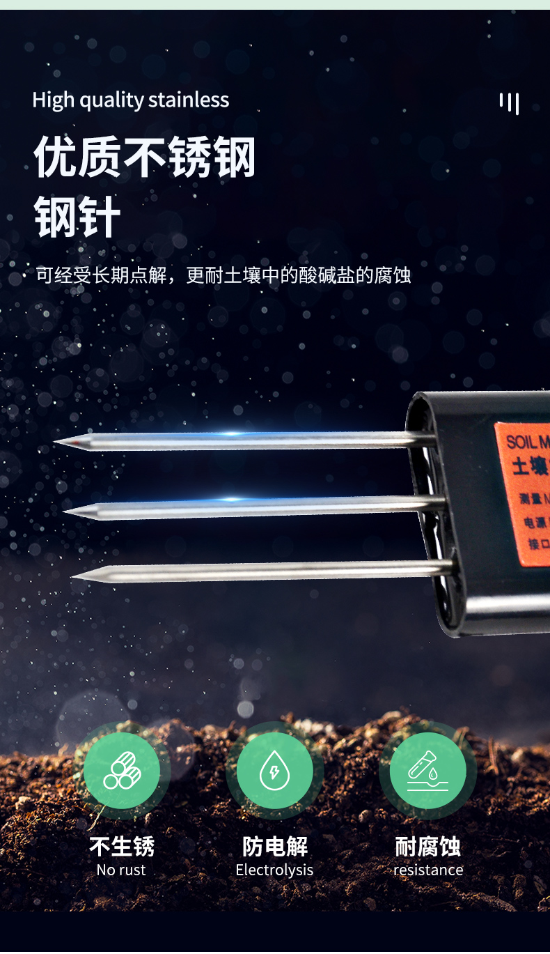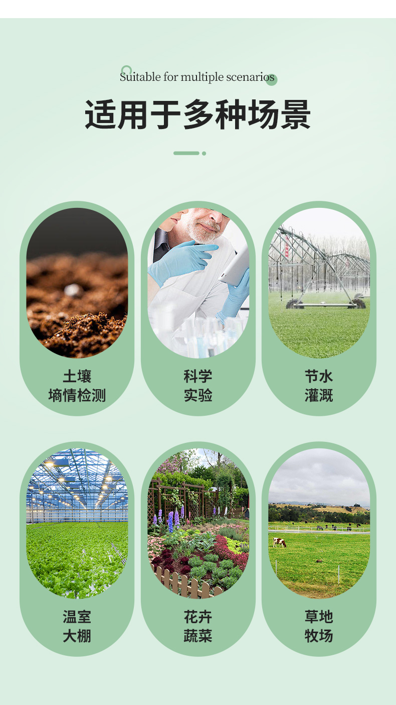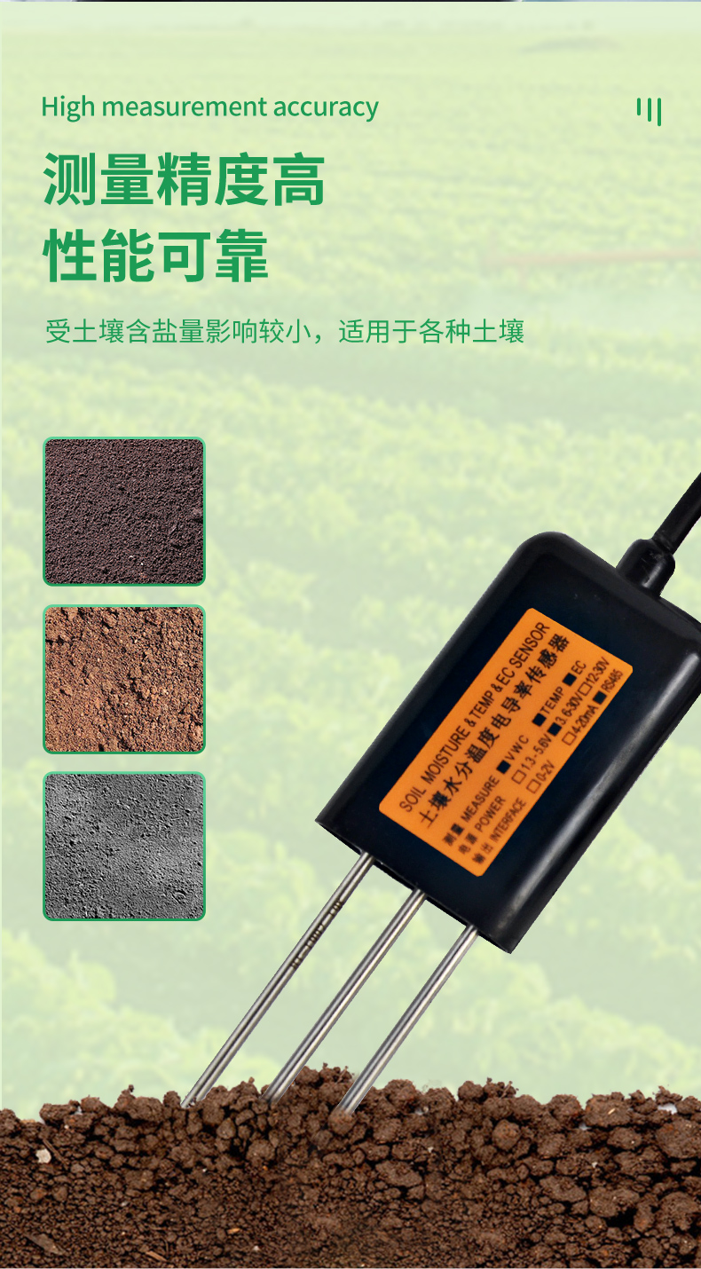 | (1)土壤含水率、電導(dǎo)率以及溫度三參數(shù)合一。 | (2)也可用于水肥一體溶液、以及其他營養(yǎng)液與基質(zhì)的電導(dǎo)率。 | (3)電極采用特殊處理的合金材料,可承受較強(qiáng)的外力沖擊,不易損壞。 | (4)完全密封,耐酸堿腐蝕,可埋入土壤或直接投入水中進(jìn)行長期動態(tài)檢測。 | (5)精度高,響應(yīng)快,互換性好,探針插入式設(shè)計(jì)保證測量**,性能可靠。 | (6)完善的保護(hù)電路與多種信號輸出接口可選。 |