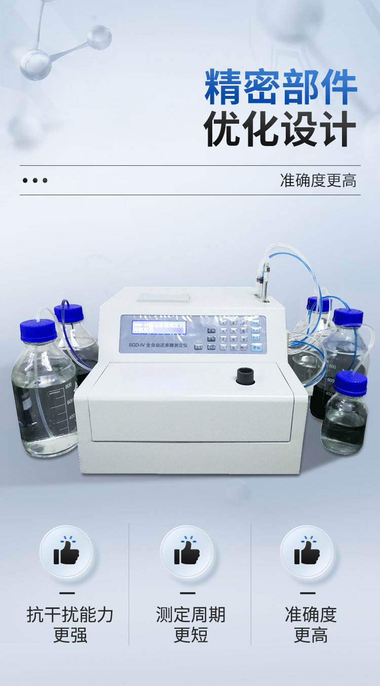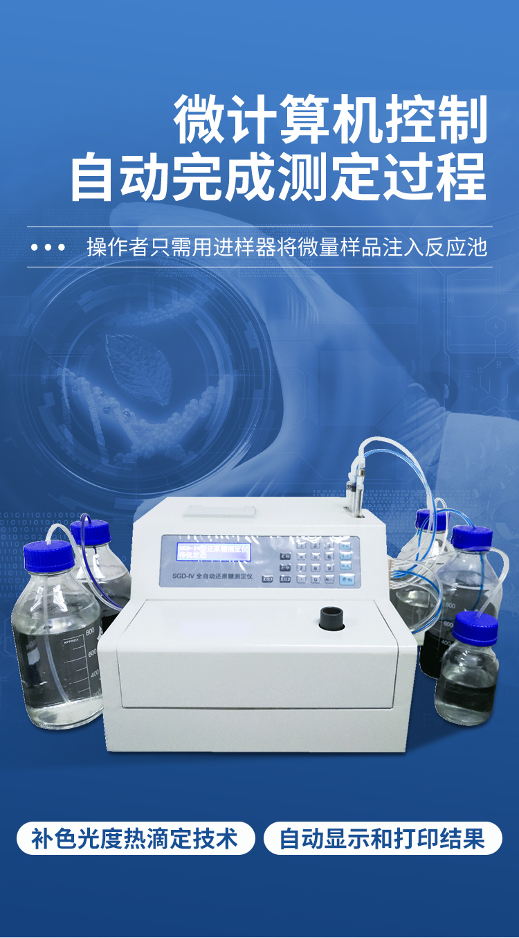 全自動還原糖測定儀是根據(jù)費(fèi)林試劑測定原理設(shè)計(jì)而成的,其原理與目前國家標(biāo)準(zhǔn)一致。IV型全自動還原糖測定儀實(shí)現(xiàn)試劑泵、滴定泵自動排氣泡,操控更方便;采用精密部件優(yōu)化設(shè)計(jì),準(zhǔn)確度更高;測定時間縮短至3分鐘以內(nèi),測定速度更快;液晶屏顯示更直觀。