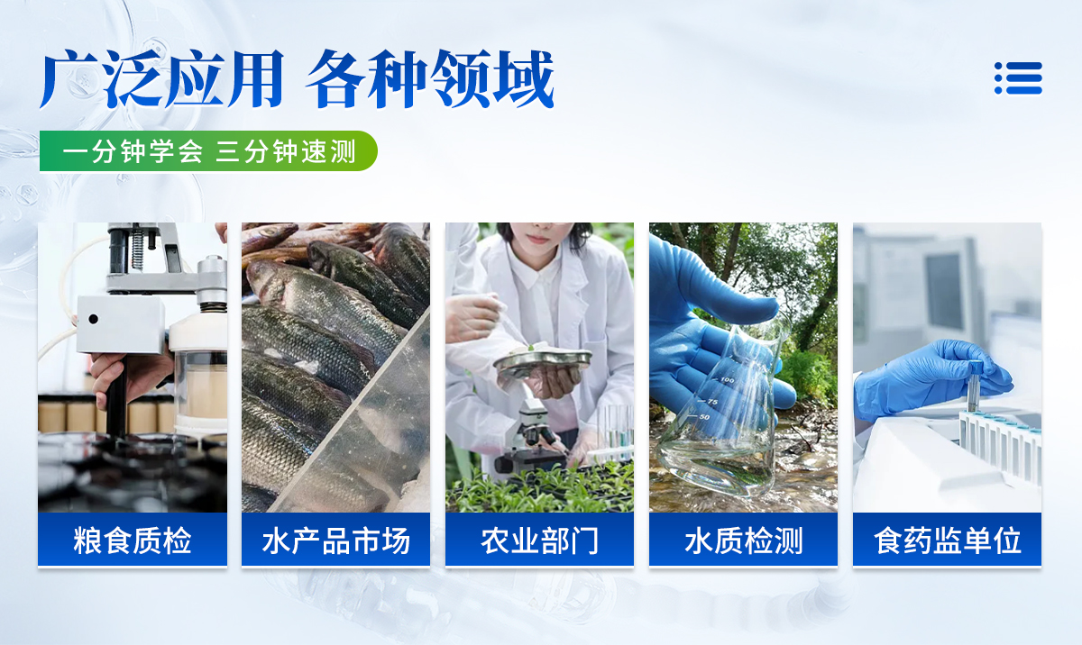重金屬檢測儀可廣泛應用于大米、糧谷、果品、蔬菜、藥材、水質(zhì)、水產(chǎn)品中重金屬鎘的快速檢測,檢測項目可根據(jù)客戶的需求定制。