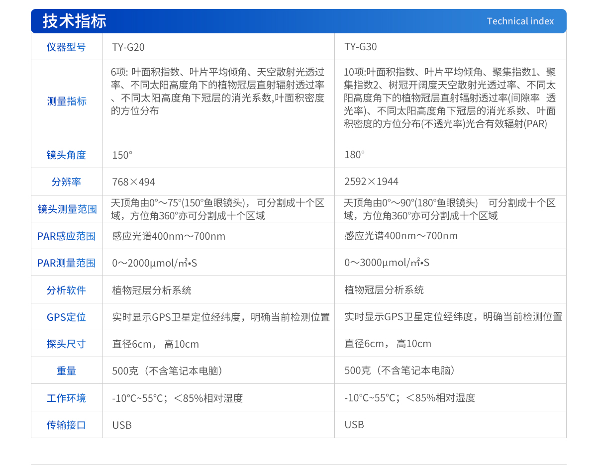 | 魚眼鏡頭可自動(dòng)保持水平狀態(tài):專門為植物冠層結(jié)構(gòu)測量設(shè)計(jì)的小型魚眼攝像鏡頭安裝在手持式萬向平衡接頭上,可自動(dòng)保持鏡頭處于水平狀態(tài),無需三角架; | 魚眼鏡頭可以伸入至冠層中:鏡頭安裝在搖臂一端,由于小巧和帶有測量桿,可以方便地水平向前或垂直向上伸入到冠層不同高度處,快速地進(jìn)行分層測量,測出群體內(nèi)光透過率和葉面積指數(shù)垂直分布圖; | 圖像分析軟件:圖像分析軟件可以任意定義圖像分析區(qū)域(天頂角可分10區(qū),方位角可分10區(qū))。 | 可屏蔽不合理冠層部分:對不同方向的冠層進(jìn)行區(qū)域性分析時(shí),可以任意屏蔽地物景象和不合理的冠層部分(如缺株、邊行問題等)。對不同天頂角起始角和終止角的選擇,可以避開不符合計(jì)算該冠層結(jié)構(gòu)參數(shù)的冠層孔隙條件,通過手動(dòng)調(diào)節(jié)閾值,可以更精準(zhǔn)的測量出葉面積指數(shù)等參數(shù); | 可測量指標(biāo) | 葉面積指數(shù) | 葉片平均傾角 | 天空散射光透過率 | 不同太陽高度角下的植物冠層直射輻射透過率 | 不同太陽高度角下冠層的消光系數(shù) | 葉面積密度的方位分布 |