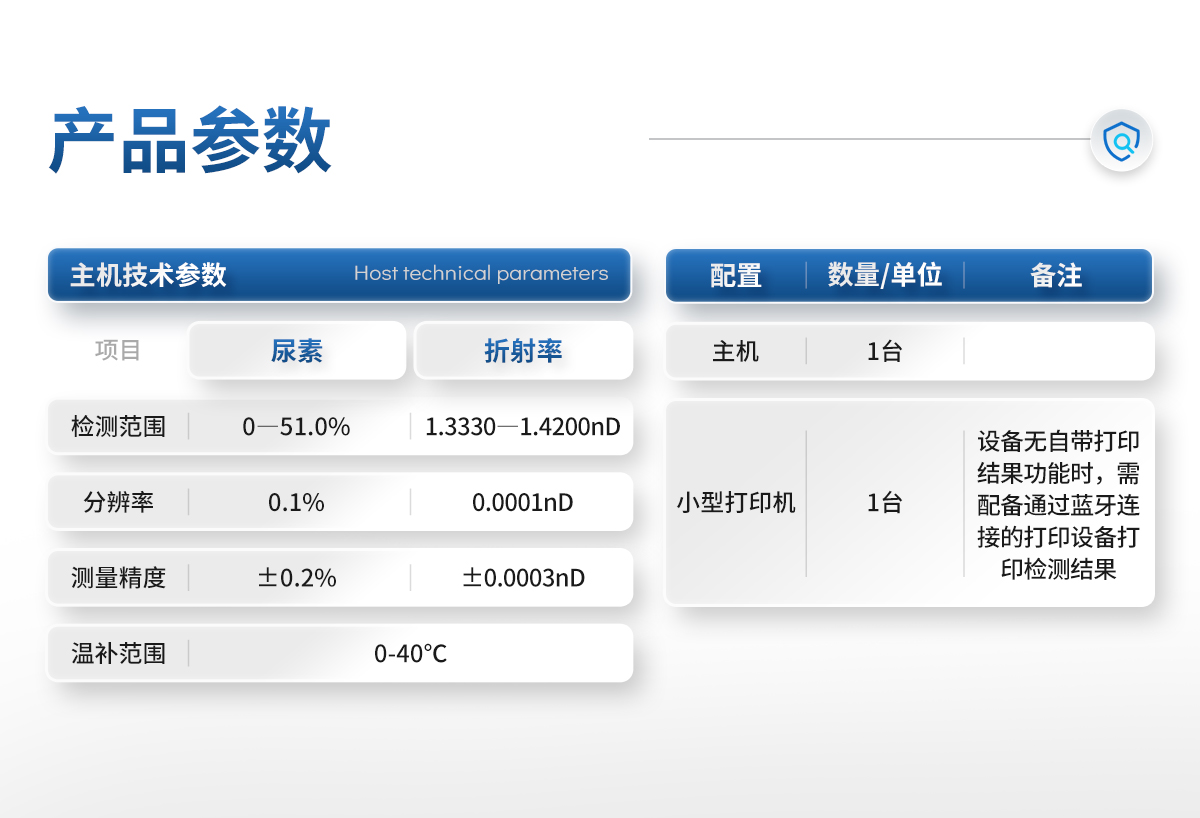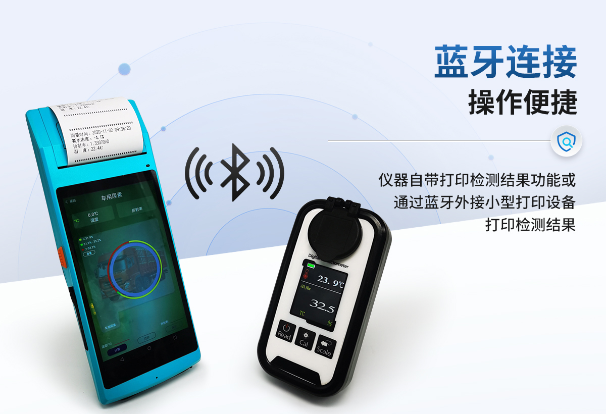 | 可快速測量車用尿素的濃度和折光率,具有自動溫度補償功能 | 帶有棱鏡蓋板,保護樣品,確保樣品精度。 | 液晶顯示屏顯示檢測結果等信息。 | 儀器可方便攜帶,適用于野外戶外使用 | 電源:堿性電池或可充電鋰電池,超低功耗,支持長時間工作。 | 儀器有PC軟件擴展功能。 | 儀器自帶打印檢測結果功能或通過藍牙外接小型打印設備打印檢測結果。 |