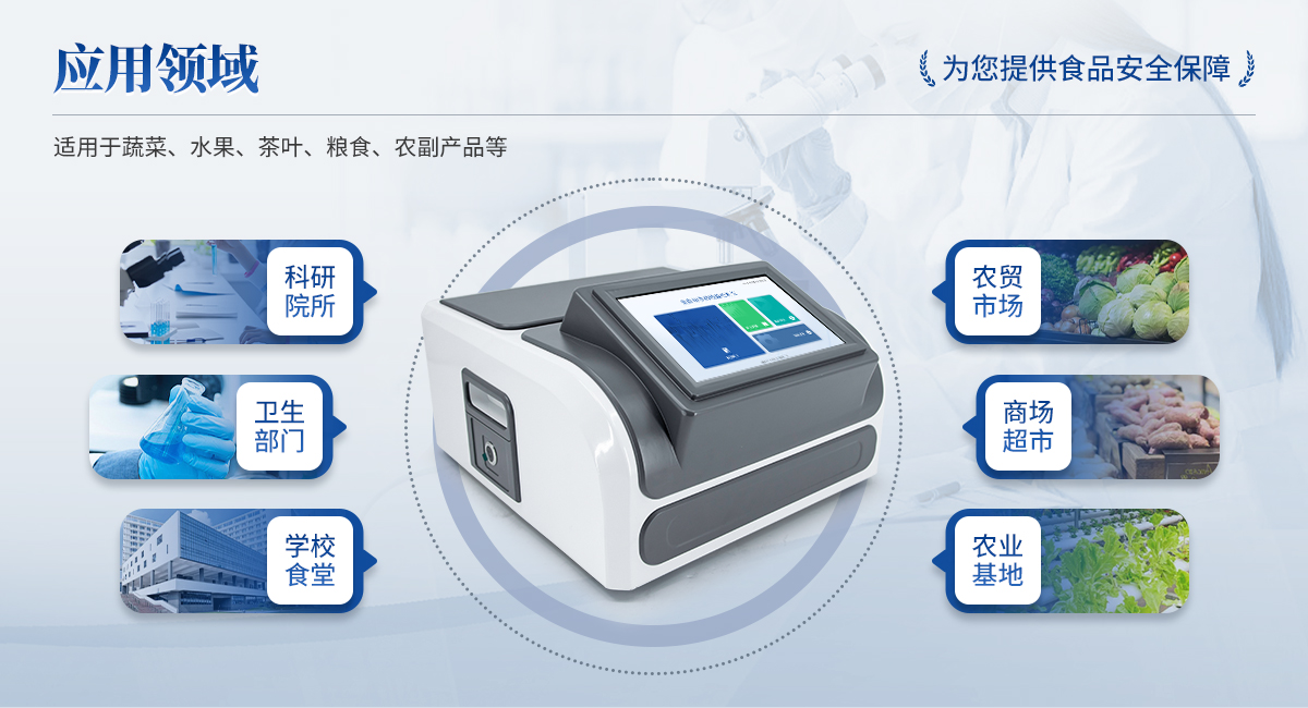 全自動(dòng)農(nóng)藥殘留檢測(cè)儀是依據(jù)國家標(biāo)準(zhǔn)方法(GB/T5009.199-2003),采用酶抑制率比色法對(duì)水果、蔬菜等農(nóng)產(chǎn)品中有機(jī)磷和氨基甲酸酯類農(nóng)藥含量進(jìn)行快速準(zhǔn)確的檢測(cè)。該設(shè)備廣泛應(yīng)用于蔬菜批發(fā)市場、超市、商場、食藥監(jiān)等部門的蔬菜和水果中的農(nóng)藥殘留檢測(cè)。