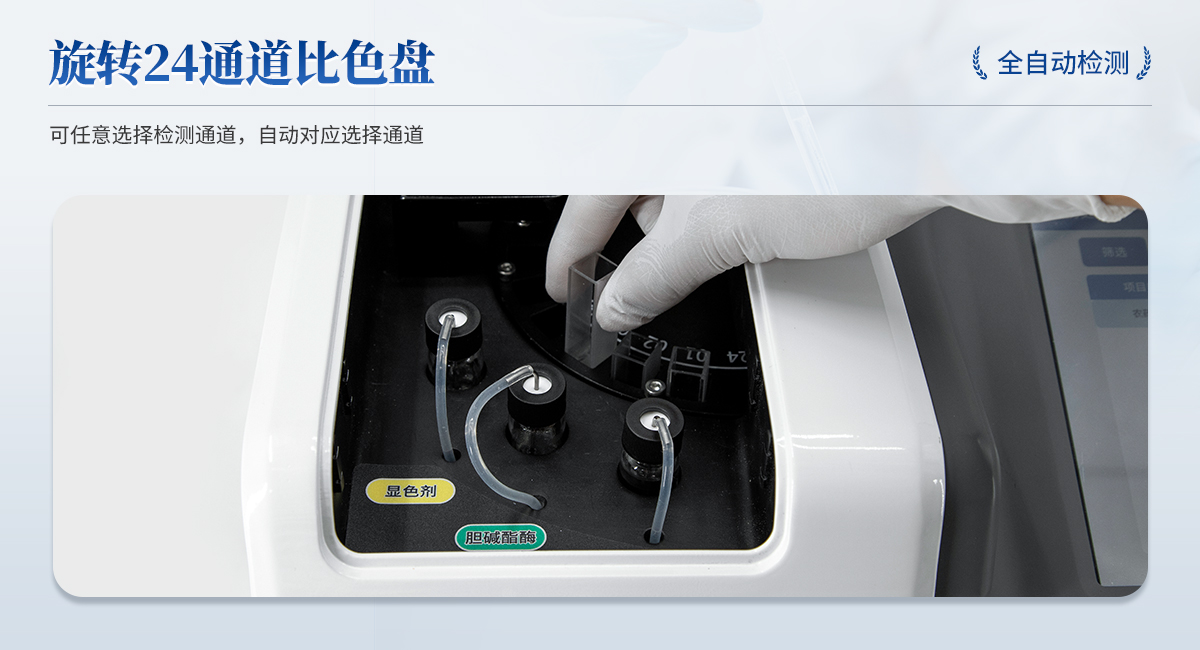 產(chǎn)品介紹: 全自動農(nóng)藥殘留檢測儀是依據(jù)國家標(biāo)準(zhǔn)方法(GB/T5009.199-2003),采用酶抑制率比色法對水果、蔬菜等農(nóng)產(chǎn)品中有機(jī)磷和氨基甲酸酯類農(nóng)藥含量進(jìn)行快速準(zhǔn)確的檢測。該設(shè)備廣泛應(yīng)用于蔬菜批發(fā)市場、超市、商場、食藥監(jiān)等部門的蔬菜和水果中的農(nóng)藥殘留檢測。 儀器主要包括光源校準(zhǔn)、系統(tǒng)設(shè)置、
