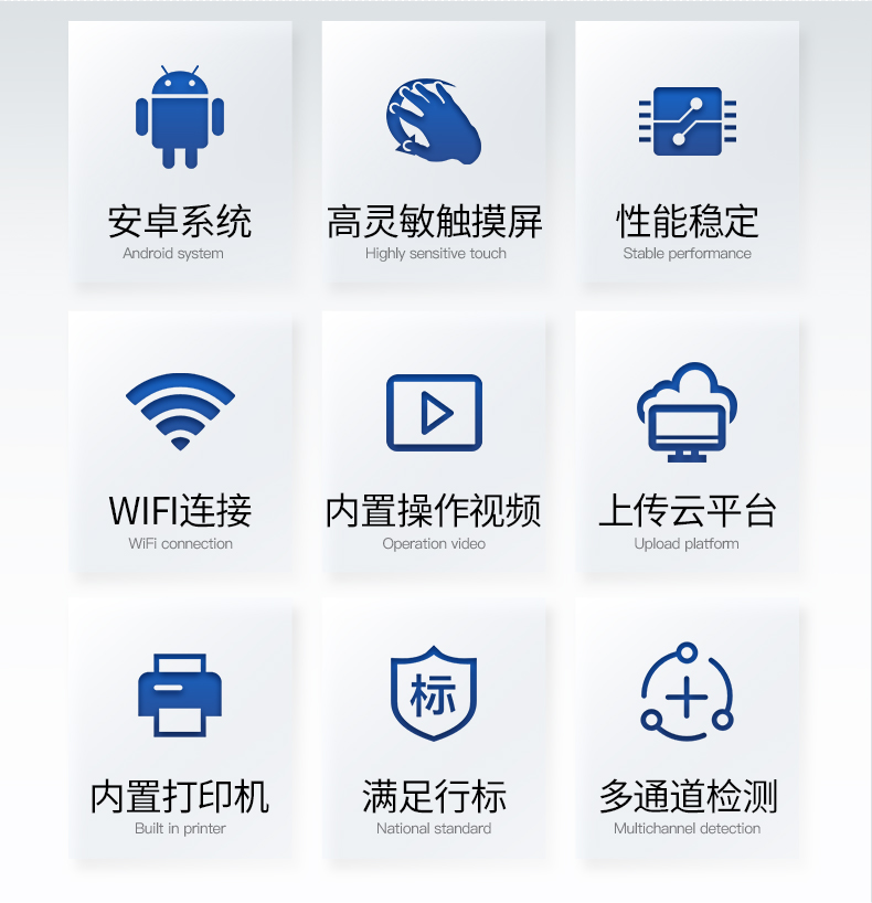 | 1、Android安卓智能操作系統(tǒng),主控芯片采用ARM Cortex-A7,RK3288/4核處理器,主頻1.88Ghz,運(yùn)轉(zhuǎn)速度更快速,穩(wěn)定性更強(qiáng)。 | 2、采用精密旋轉(zhuǎn)比色池設(shè)計(jì)(**號(hào):ZL 2018 2 1777724.7),光源一致性更加**,保證檢測(cè)精度。 | 3、8個(gè)旋轉(zhuǎn)檢測(cè)通道,一次性可快速檢測(cè)8個(gè)樣品,極大提升檢測(cè)效率,降低檢測(cè)成本。 | 4、采用高精度濾光片技術(shù)自主**分析方法(**號(hào):ZL 2020 2 1763837.9),**認(rèn)證。 | 5、檢測(cè)過(guò)程中內(nèi)置校準(zhǔn)功能,智能恒流穩(wěn)壓,光強(qiáng)自動(dòng)校準(zhǔn),確保檢測(cè)準(zhǔn)確度,取得中國(guó)計(jì)量科學(xué)研究院的《校準(zhǔn)證書(shū)》。 | 6、儀器標(biāo)配wifi無(wú)線(xiàn)上傳、4G聯(lián)網(wǎng)傳輸、GPRS無(wú)線(xiàn)遠(yuǎn)傳功能,快速上傳數(shù)據(jù)。 | 7、配有智慧云農(nóng)業(yè)平臺(tái),儀器連入無(wú)線(xiàn)網(wǎng)絡(luò)后,可將檢測(cè)數(shù)據(jù)可選擇性或批量無(wú)線(xiàn)上傳,方便用戶(hù)進(jìn)行長(zhǎng)期數(shù)據(jù)管理和可視化分析 | 8、儀器同時(shí)具有USB接口、以太網(wǎng)接口,內(nèi)置大容量?jī)?nèi)存,并可隨時(shí)用U盤(pán)拷貝數(shù)據(jù)。 | 9、可用手機(jī)隨時(shí)登錄云平臺(tái)在線(xiàn)移動(dòng)查看歷史數(shù)據(jù) | 10、內(nèi)置作物專(zhuān)家施肥系統(tǒng),可對(duì)百余種全國(guó)農(nóng)業(yè)經(jīng)濟(jì)作物、果樹(shù)等的目標(biāo)產(chǎn)量計(jì)算推薦施肥量,依據(jù)施肥配方科學(xué)指導(dǎo)農(nóng)業(yè)生產(chǎn)。測(cè)土配方施肥結(jié)果可打印,打印內(nèi)容包含:作物種類(lèi)、肥料種類(lèi)、目標(biāo)產(chǎn)量、需求總量、建議施肥方案。 | 11、內(nèi)置植物營(yíng)養(yǎng)診斷標(biāo)準(zhǔn)圖譜,根據(jù)各農(nóng)作物營(yíng)養(yǎng)缺失的圖片,進(jìn)行葉面對(duì)比,診斷豐缺。 | 12、4波長(zhǎng)專(zhuān)業(yè)測(cè)試?yán)涔庠矗t、藍(lán)、綠、橙),光源波長(zhǎng)穩(wěn)定,長(zhǎng)時(shí)間連續(xù)工作光源無(wú)溫漂現(xiàn)象,壽命長(zhǎng)達(dá)10萬(wàn)小時(shí)級(jí)別,重現(xiàn)性好,準(zhǔn)確度高。 | 13、比色池部分采用標(biāo)準(zhǔn)1cm比色皿,無(wú)機(jī)械位移及磨損,光路測(cè)試定位**,有效屏蔽外光干擾,保證檢測(cè)結(jié)果優(yōu)于國(guó)標(biāo)要求。 | 14、儀器系統(tǒng)內(nèi)帶有樣品前處理操作視頻,各種樣品檢測(cè)方法點(diǎn)擊視頻模塊即可觀(guān)看,檢測(cè)人員無(wú)需自學(xué)說(shuō)明書(shū),指導(dǎo)教學(xué)方便快速,方便新手快速操作。 | 15、內(nèi)置新一代高速熱敏打印機(jī)(無(wú)需色帶),打印內(nèi)容包含:檢測(cè)單位、檢測(cè)人員、檢測(cè)項(xiàng)目、通道號(hào)、吸光度、養(yǎng)分含量(mg/kg)、檢測(cè)時(shí)間、以及二維碼等信息 | 16、高靈敏7寸真彩觸摸屏,采用更加**和人性化操作,高清晰高交互顯示,大程度降低傳統(tǒng)儀器的繁瑣操作和失誤,并取得多項(xiàng)《軟件著作權(quán)》。 | 17、內(nèi)置時(shí)鐘功能,方便操作時(shí)間記錄,長(zhǎng)期歷史追溯。 | 18、可設(shè)置多賬戶(hù)賬號(hào)密碼登錄,**UI交互界面,不同的用戶(hù)可自由添加編輯檢測(cè)信息,保存后可長(zhǎng)期使用。 | 19、GPS功能:可在野外作業(yè)時(shí)記錄經(jīng)緯度地點(diǎn),滿(mǎn)足特殊用戶(hù)需求。 | 20、內(nèi)置低電壓提示功能,可在檢測(cè)時(shí)明確電量,避免測(cè)試數(shù)據(jù)偏移,同時(shí)具有斷電保護(hù)功能,斷電自動(dòng)保存數(shù)據(jù),防止數(shù)據(jù)丟失。 | 21、交直流兩用供電方式,內(nèi)置大容量充電鋰電池,滿(mǎn)電狀態(tài)下可連續(xù)工作10余小時(shí),同時(shí)可外接車(chē)載電源蓄電。 | 22、儀器具有中英文切換功能,可滿(mǎn)足出口要求。 | 23、高強(qiáng)度PVC工程塑料手提箱設(shè)計(jì),堅(jiān)固耐用,便于攜帶。 |