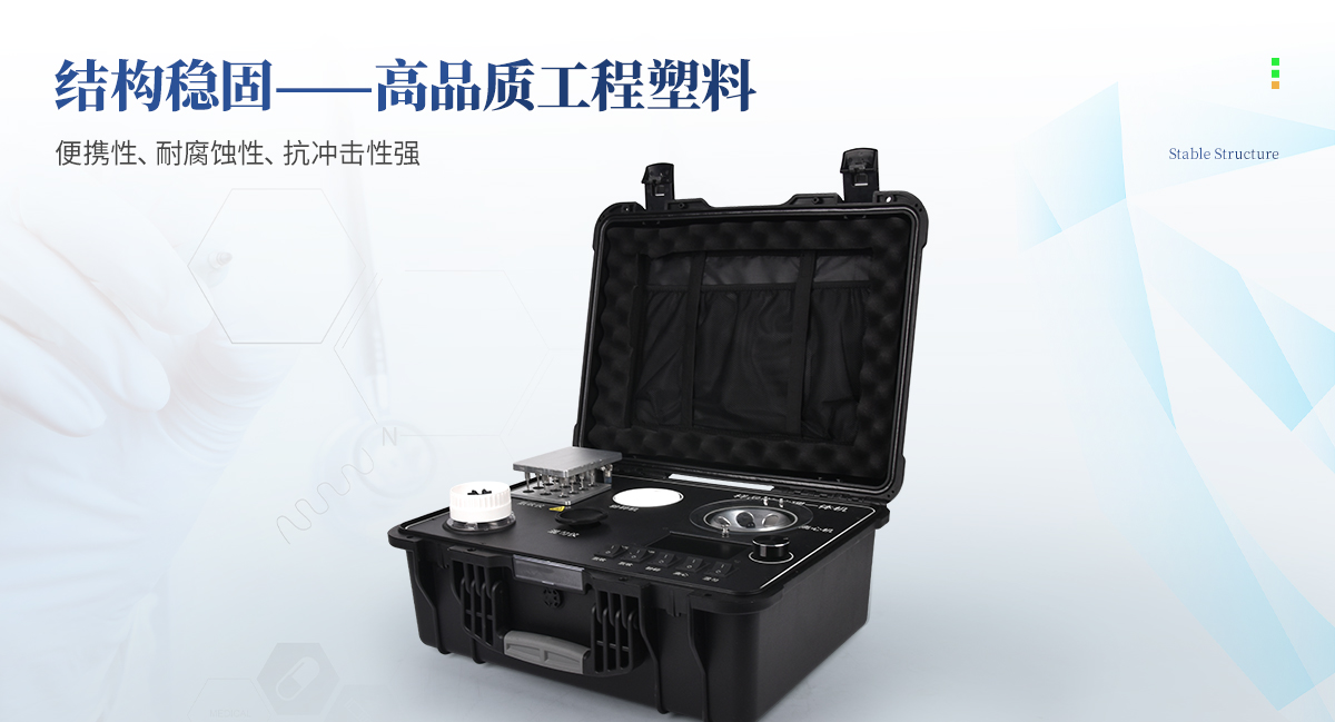 | 1、功能緊湊,集成四種樣品前處理常用的功能,完成樣品一站式處理。 | 2、結(jié)構(gòu)穩(wěn)固,機箱采用***工程塑料,具備**的抗沖擊性、耐腐蝕性、便攜性。 | 3、操作穩(wěn)定,機器采用五寸全彩色液晶屏,功能指示性強,用戶操作均為實體開關(guān),杜絕佩戴手套和液體噴濺時的操作失效。 |