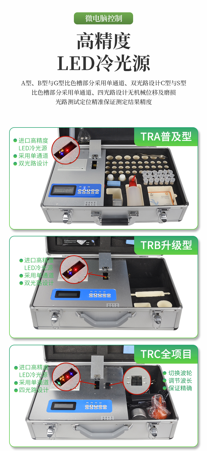 | 1、《機(jī)箱/藥劑一體式鋁合金機(jī)箱》設(shè)計,便于攜帶、堅固耐用,配套成品藥劑。 | 2、微電腦控制,數(shù)字化線路、程序化設(shè)計,液晶顯示,交直流兩用,可野外流動測試,大程度降低操作者的失誤和勞動強(qiáng)度。 | 3、分辨率:0.001,觸摸式按鍵,內(nèi)置**熱敏打印機(jī),可打印測試結(jié)果。 | 4、全項目土壤肥料養(yǎng)分檢測儀可檢測土壤及化肥、有機(jī)肥(含葉面肥、水溶肥、噴施肥等)、植株中的速效氮、速效磷、有效鉀、全氮、全磷、全鉀、有機(jī)質(zhì)、酸堿度,鈣、鎂、硫、鐵、錳、硼、鋅、銅、氯、硅、鉬等各種中微量元素以及鉛、鉻、鎘、汞、砷、鎳、鋁、氟、鈦、硒等各種重金屬含量。 | 5、采用高亮LED燈光源、雙撥輪濾光式處理技術(shù),保證光源波長穩(wěn)定, 硅半導(dǎo)體作為信號接收系統(tǒng), 壽命長達(dá)10萬小時級別。光源穩(wěn)定,重現(xiàn)性好,準(zhǔn)確度高。 | 6、比色槽部分采用單通道設(shè)計,無機(jī)械位移及磨損,光路測試定位**,保證測定結(jié)果精度。 | 7、配套專家施肥系統(tǒng)數(shù)據(jù),可對百余種全國農(nóng)業(yè)、果樹、 經(jīng)濟(jì)作物的目標(biāo)產(chǎn)量科學(xué)計算推薦施肥量。 | 8、采用高精度濾光片技術(shù)自主**分析方法(**號:ZL 2018 2 1777724.7),保證檢測結(jié)果優(yōu)于國標(biāo)要求。 |