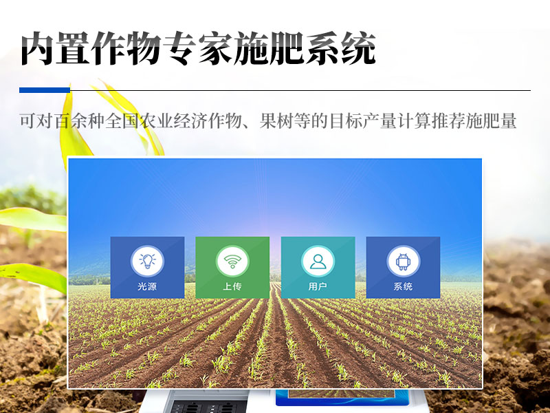 | 1、本儀器集各功能于一身,無需用戶自配附件,可靈活流動(dòng)檢測(cè)。 | 2、安卓(Android)智能操作系統(tǒng),主控芯片采用ARM Cortex-A7,RK3288/4核處理器,主頻1.88Ghz,運(yùn)轉(zhuǎn)速度更快速,穩(wěn)定性更強(qiáng)。 | 3、雙聯(lián)排12個(gè)檢測(cè)通道(固態(tài)化設(shè)計(jì)),一次性可快速檢測(cè)12個(gè)樣品,極大提升檢測(cè)效率,降低檢測(cè)成本。 | 4、檢測(cè)過程中內(nèi)置校準(zhǔn)功能,智能恒流穩(wěn)壓,光強(qiáng)自動(dòng)校準(zhǔn),確保檢測(cè)準(zhǔn)確度。 | 5、內(nèi)置作物專家施肥系統(tǒng),可對(duì)百余種全國(guó)農(nóng)業(yè)經(jīng)濟(jì)作物、果樹等的目標(biāo)產(chǎn)量計(jì)算推薦施肥量,依據(jù)施肥配方科學(xué)指導(dǎo)農(nóng)業(yè)生產(chǎn)。測(cè)土配方施肥結(jié)果可打印,打印內(nèi)容包含:作物種類、肥料種類、目標(biāo)產(chǎn)量、需求總量、建議施肥方案。 | 6、儀器標(biāo)配wifi無線上傳、4G聯(lián)網(wǎng)傳輸、GPRS無線遠(yuǎn)傳功能,快速上傳數(shù)據(jù)。 | 7、儀器內(nèi)置大容量?jī)?nèi)存,支持查看全部歷史檢測(cè)記錄,以及傳輸所有檢測(cè)數(shù)據(jù)。 | 8、配有智慧云農(nóng)業(yè)平臺(tái),儀器連入無線網(wǎng)絡(luò)后,可將檢測(cè)數(shù)據(jù)可選擇性或批量無線上傳,方便用戶進(jìn)行長(zhǎng)期數(shù)據(jù)管理和可視化分析。 | 9、儀器同時(shí)具有USB接口、以太網(wǎng)接口,并可隨時(shí)用U盤拷貝出數(shù)據(jù)。 | 10、可用手機(jī)隨時(shí)登錄云平臺(tái)在線移動(dòng)查看歷史數(shù)據(jù) | 11、內(nèi)置植物營(yíng)養(yǎng)診斷標(biāo)準(zhǔn)圖譜,根據(jù)各農(nóng)作物營(yíng)養(yǎng)缺失的圖片,進(jìn)行葉面對(duì)比,診斷豐缺。 | 12、4波長(zhǎng)專業(yè)測(cè)試?yán)涔庠矗t、藍(lán)、綠、橙),光源波長(zhǎng)穩(wěn)定,長(zhǎng)時(shí)間連續(xù)工作光源無溫漂現(xiàn)象,壽命長(zhǎng)達(dá)10萬小時(shí)級(jí)別,重現(xiàn)性好,準(zhǔn)確度高。 | 13、比色池部分采用標(biāo)準(zhǔn)1cm比色皿,無機(jī)械位移及磨損,光路測(cè)試定位**,有效屏蔽外光干擾,保證檢測(cè)結(jié)果優(yōu)于國(guó)標(biāo)要求。 | 14、儀器系統(tǒng)內(nèi)帶有樣品前處理操作視頻,各種樣品檢測(cè)方法點(diǎn)擊視頻模塊即可觀看,檢測(cè)人員無需自學(xué)說明書,指導(dǎo)教學(xué)方便快速,方便新手快速操作。 | 15、內(nèi)置新一代高速熱敏打印機(jī)(無需色帶),打印內(nèi)容包含:檢測(cè)單位、檢測(cè)人員、檢測(cè)項(xiàng)目、通道號(hào)、吸光度、養(yǎng)分含量(mg/kg)、檢測(cè)時(shí)間、以及二維碼等信息 | 16、高靈敏7寸真彩觸摸屏,采用更加**和人性化操作,高清晰高交互顯示,大程度降低傳統(tǒng)儀器的繁瑣操作和失誤。 | 17、內(nèi)置時(shí)鐘功能,方便操作時(shí)間記錄,長(zhǎng)期歷史追溯。 | 18、可設(shè)置多賬戶賬號(hào)密碼登錄,**UI交互界面,不同的用戶可自由添加編輯檢測(cè)信息,保存后可長(zhǎng)期使用。 | 19、GPS功能:可在野外作業(yè)時(shí)記錄經(jīng)緯度地點(diǎn),滿足特殊用戶需求。 | 20、內(nèi)置低電壓提示功能,可在檢測(cè)時(shí)明確電量,避免測(cè)試數(shù)據(jù)偏移,同時(shí)具有斷電保護(hù)功能,斷電自動(dòng)保存數(shù)據(jù),防止數(shù)據(jù)丟失。 | 21、交直流兩用供電方式,內(nèi)置大容量充電鋰電池,滿電狀態(tài)下可連續(xù)工作10余小時(shí),同時(shí)可外接車載電源蓄電。 | 22、儀器具有中英文切換功能,可滿足出口要求。 |