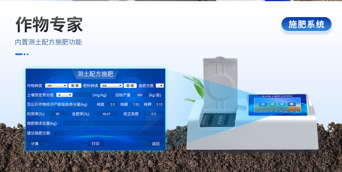 產(chǎn)品簡(jiǎn)介: 配套齊全:該儀器無(wú)需用戶自配附件,相當(dāng)于一個(gè)小型實(shí)驗(yàn)室。適于農(nóng)業(yè)服務(wù)部門或農(nóng)資經(jīng)銷商、合作社、肥料廠商、大種植戶測(cè)土施肥和鑒別肥料真假。 檢測(cè)功能全:測(cè)試項(xiàng)目國(guó)內(nèi)外全面,除標(biāo)配試劑外,其他各