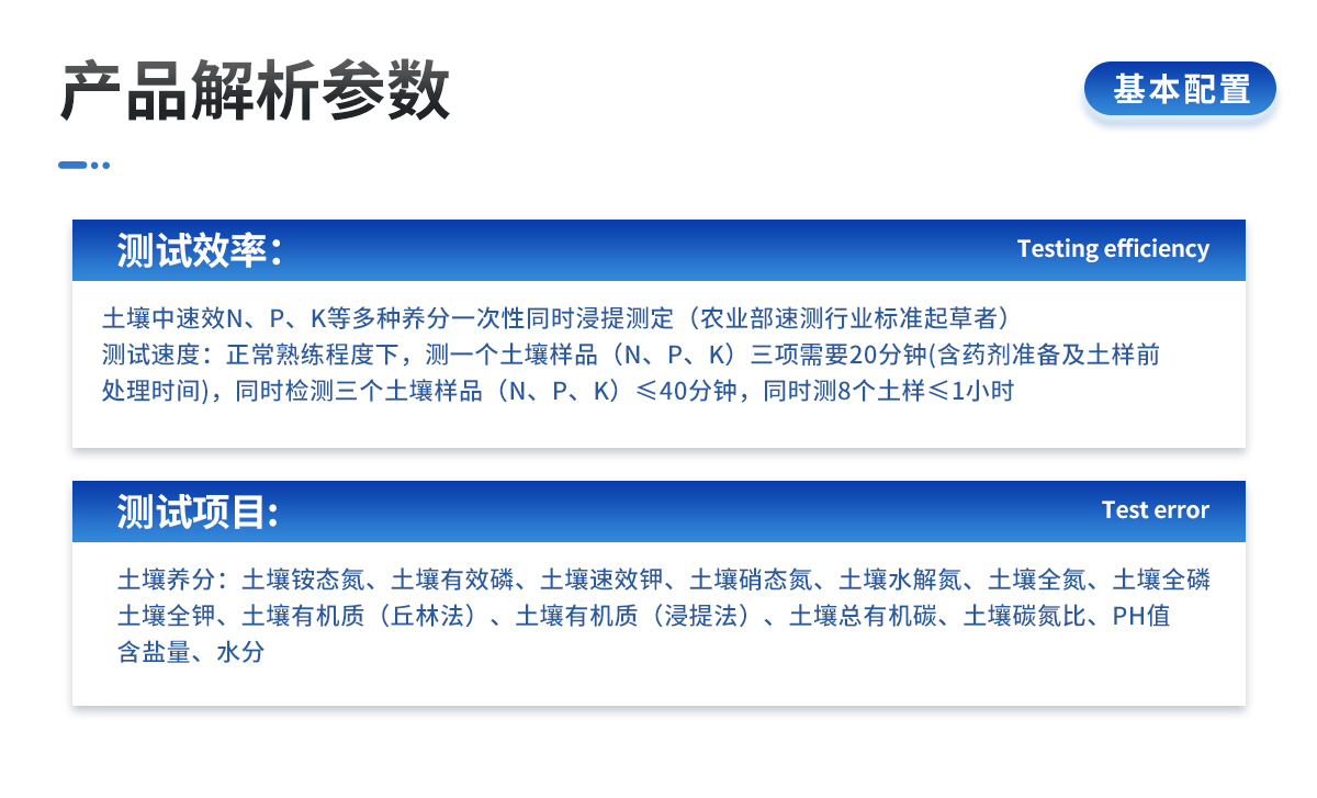 | 土壤氮磷鉀誤差≤1%,有機(jī)質(zhì)誤差≤2%,微量元素相對(duì)誤差≤5%;肥料單項(xiàng)誤差≤0.5%,氮磷鉀三項(xiàng)誤差≤1%。 |