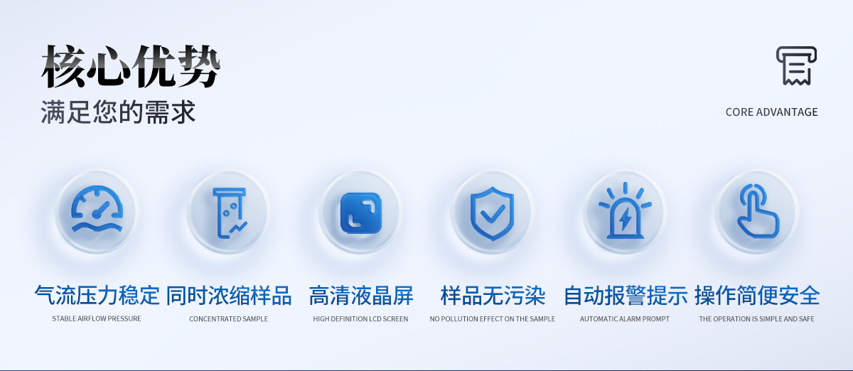 全自動多功能干式氮吹儀YT-QD12G是我司結(jié)合實驗室使用需求,從使用者方便安全快捷穩(wěn)定等多角度共同開發(fā)的新型濃縮定容產(chǎn)品,產(chǎn)品擺脫了常規(guī)市場上利用水浴加熱揮發(fā)而導(dǎo)致樣品進行污染的弊端,確定樣品的安全性與準確性,具有無人值守、準確定容、大批量濃縮的特點,可多組數(shù)據(jù)儲存功能,實現(xiàn)了全自動化的定量及批量濃縮,濃縮全程,讓繁瑣的濃縮過程變得靈活、省心、**和安全。