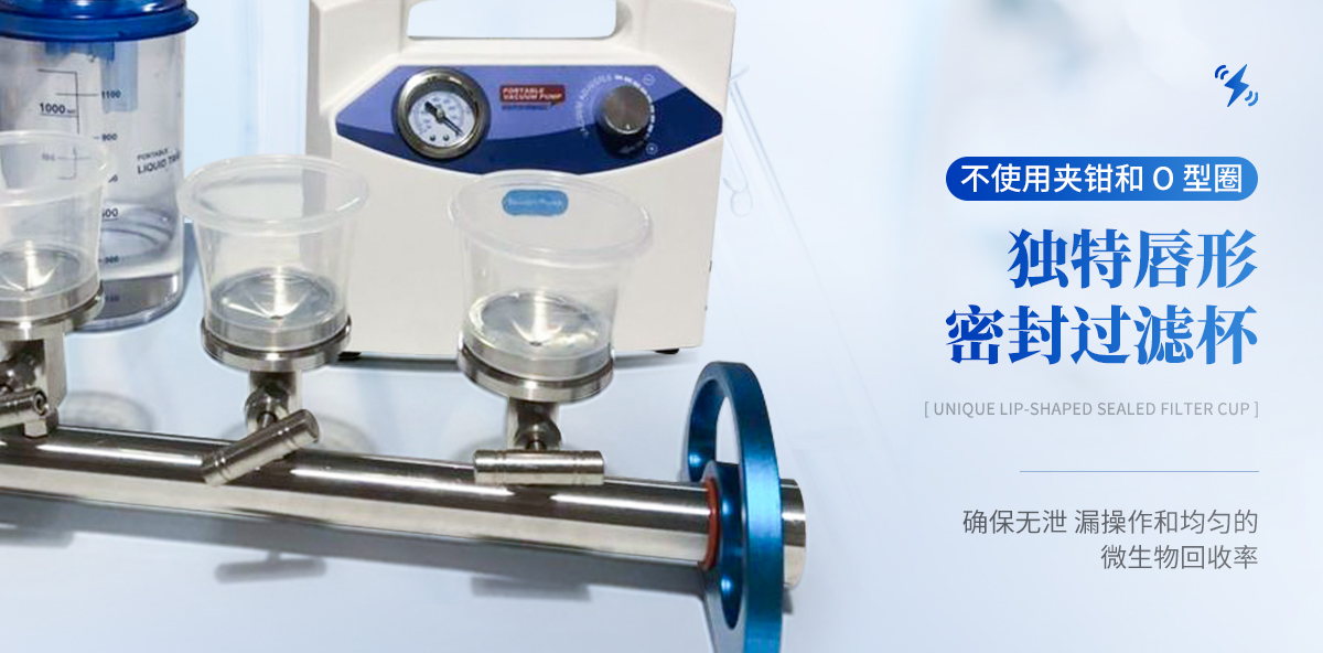 微生物限度檢測(cè)系統(tǒng)采用不銹鋼金屬材料制成,配有真空泵,外接抽濾瓶