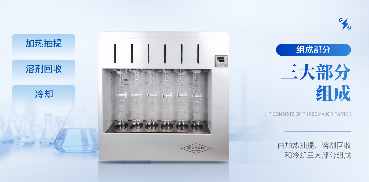 | 脂肪測定儀主要由加熱抽提,溶劑回收和冷卻三大部分組成。操作時可以根據(jù)試劑沸點和環(huán)境溫度不同而調(diào)節(jié)加熱溫度,試樣在抽提過程反復浸泡及抽提,從而達到快速提取目的;本儀器可自動回收溶劑,大大方便了用戶的使用,并節(jié)約了很多時間。 |