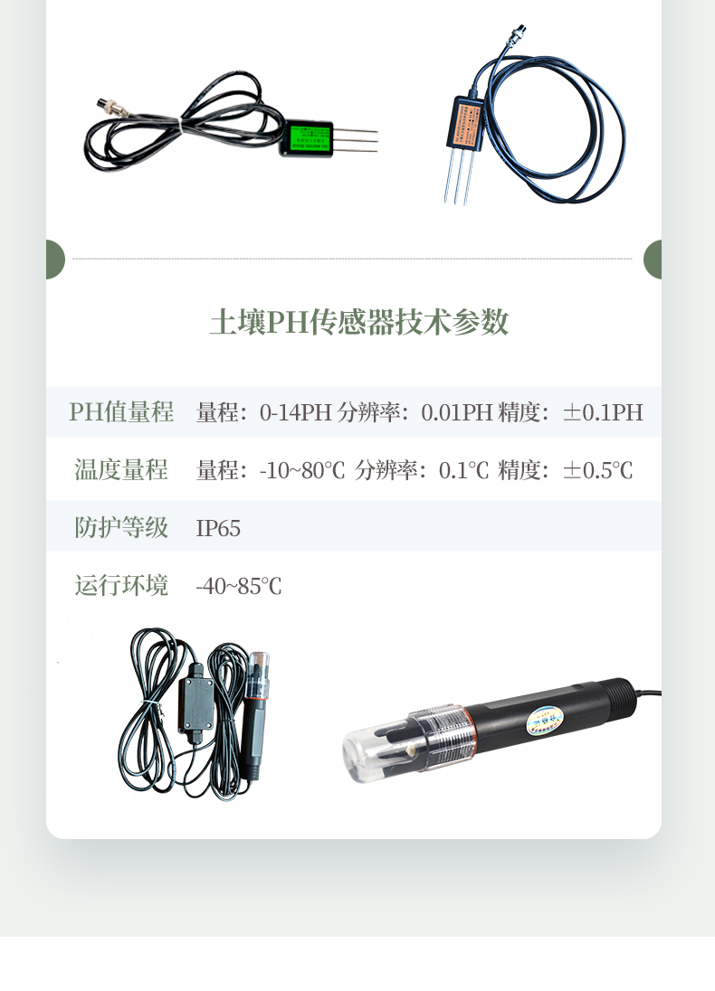 | 土壤水分:(土壤容積含水量:) 單位:%(m3/m3);.測試靈敏度:±0.01 %(m3/m3);.量程:0-100%(m3/m3); 測量精度:0-50%(m3/m3)范圍內)±2%(m3/m3);50-100%(m3/m3)范圍內)±3%(m3/m3); 分辨率:0.1% 互換精度:<3% 復測誤差:<1% 響應時間:<1秒 測量穩(wěn)定時間:1秒 測量區(qū)域:直徑為10cm、高為10cm的圓柱體 | 土壤溫度: 范圍:-40-120℃ 測量精度:±0.2℃ 分辨率:±0.1℃ 互換誤差:<0.2℃ 響應時間:<100mS 穩(wěn)定時間:<1秒 | 土壤鹽分: