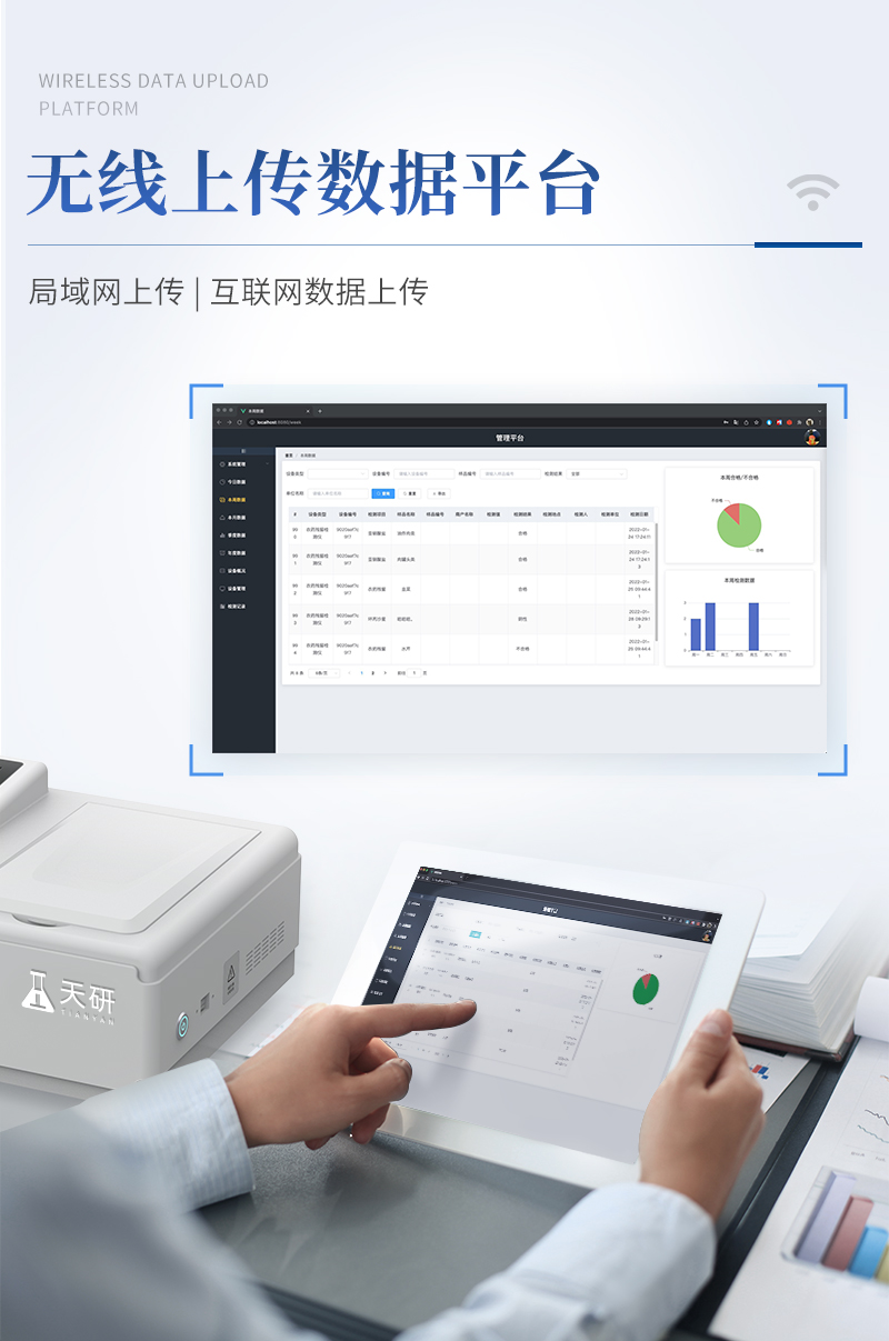 | 儀器采用臺式一體化系統(tǒng)檢測技術,將分光光度模塊、新型農(nóng)殘檢測模塊、數(shù)字化管理模塊、無線通訊模塊高度集成于一體,支持檢測200種食品安全檢測項目,同時預留升級檢測方法。 | 儀器檢測模塊標準化、智能化,可隨意自由組合。檢測箱體內(nèi)置多個標準檢測單元,檢測模塊可以調(diào)整配置。 | 儀器采用全新安卓智能系統(tǒng),主控芯片采用 ARM Cortex-A7,RK3288/4核處理器,10.1寸高清液晶觸摸豎屏,更加**的UI交互界面,運轉(zhuǎn)快捷;儀器配備無線通信模塊: 4G(APN)通訊模塊、Wifi模塊,藍牙傳輸,同時具有雙USB接口以及RJ45接口能以多種方式實現(xiàn)數(shù)據(jù)保存和數(shù)據(jù)傳輸功能。 | 創(chuàng)新檢測模式: | ★檢測通道:≥12通道;采用精密旋轉(zhuǎn)比色池設計,使用同芯片同光源校準精度,解決不同光源之間的誤差值。1-12通道間誤差0.1%。(**號:ZL202022821055.2) | ★儀器具有自動識別比色皿檢測功能,即:將樣品比色皿放入儀器后,點擊樣品檢測,儀器自動識別比色皿進行通道檢測。 | 進口高精光源: | 高精度進口四波長冷光源,通道配置 410、520、590、630nm 波長光源,一個光源芯片驅(qū)動一個光源,誤差極小,每臺設備單獨**校準光源,**比對,同時參照四種不同波段光源全方位覆蓋市面上99%的農(nóng)殘食品項目檢測。 | 智能化操作系統(tǒng): | 便捷操作系統(tǒng):設備檢測時可在同一檢測界面自動對應相關檢測通道一次性選擇1-12個樣品名稱,無須退出界面,節(jié)省操作時間。 | 數(shù)據(jù)集成系統(tǒng):設備首頁自動統(tǒng)計檢測數(shù)據(jù)包含:周檢測數(shù)據(jù)、月檢測數(shù)據(jù),全部檢測總數(shù)量,均包含檢測總數(shù),合格數(shù),不合格數(shù),以及相關柱形分析圖,對各項檢測數(shù)據(jù)清晰掌握,無需電腦查詢,更加快捷直觀。 | 項目預設系統(tǒng):支持添加單個及多個相同或不相同的任務預設,一鍵快速調(diào)取,每一個任務分別可以設置不同的樣品、批次、編號、來源、備注、抽樣信息、檢測信息、受檢信息、復核信息等更多信息。無縫鏈接平臺和APP實時查看下發(fā)任務。 | 數(shù)據(jù)監(jiān)管系統(tǒng):同步對接監(jiān)管平臺,數(shù)據(jù)可局域網(wǎng)和互聯(lián)網(wǎng)數(shù)據(jù)上傳,檢測結(jié)果可選擇直接傳至食品安全監(jiān)管平臺。集成OSS輸出存儲服務、區(qū)分設備定向管理應用,進行區(qū)域食品安全監(jiān)管及大數(shù)據(jù)分析處理與數(shù)據(jù)統(tǒng)計,檢測區(qū)域食品安全長短期動態(tài),達到食品安全問題預估、預警。 | 自定義打印系統(tǒng):內(nèi)置全新打印系統(tǒng),新創(chuàng)自定義打印方式,可按需靈活設置開啟或關閉:產(chǎn)品合格證(國家農(nóng)業(yè)部標準要求),二維碼,抽樣信息、檢測信息,受檢信息、復核信息、抽樣日期、檢測日期等信息的打印。 | 系統(tǒng)遠程更新功能:可定向分客戶分儀器更新系統(tǒng),按照不同客戶后期實際需求添加項目,無需機器返廠,即可遠程實時升級全新系統(tǒng),節(jié)省時間成本及避免運輸造成設備損壞。 | 儀器主機采用一體化防水、抗壓、防撞擊、防腐蝕箱體設計,同時配備交直流供電,可連接車載電源,可選配大容量充電鋰電池,滿足現(xiàn)場野外檢測需求。 | 安全證書,放心保障:儀器具有中國計量科學研究院校準證書,**認證。 |